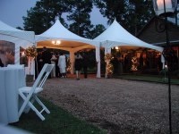 For most weddings and corporate events we use white tents manufactured out of "Block out Fabric" These fabrics do not allow light to penetrate through them making it a lot cooler during hot weather.